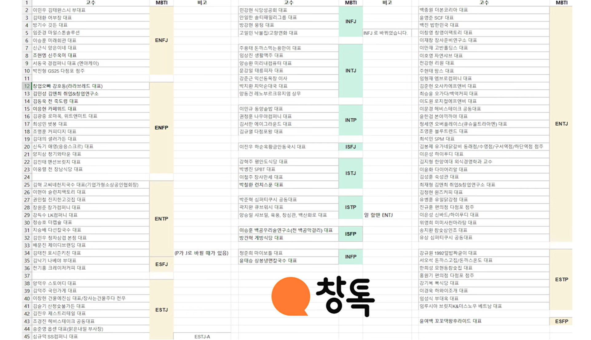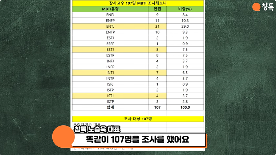 장사고수 MBTI 107명 조사 데이터 - 창톡