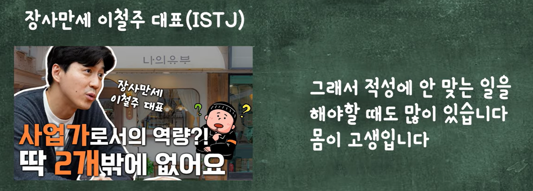ISTJ 이철주 장사만세 대표의 고백 "N성향이 부러워요"