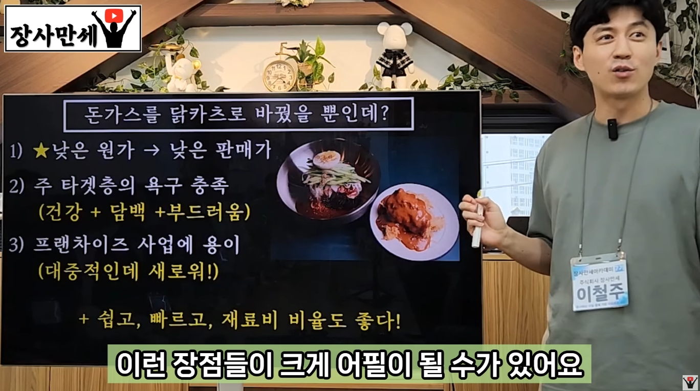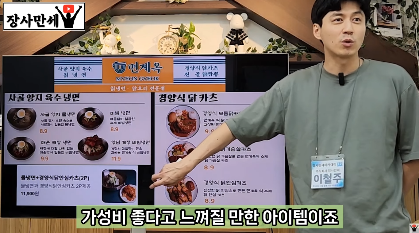 기존 돈까스와 냉면 조합에서 벗어나 닭고기를 활용해 원가를 낮추면서도 새로운 소비자층을 공략하는 모습이 인상적이었습니다.