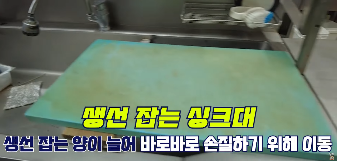 가장 먼저 한 일은 생선 손질용 싱크대를 뒷주방에서 앞으로 끌어오는 작업이었습니다.