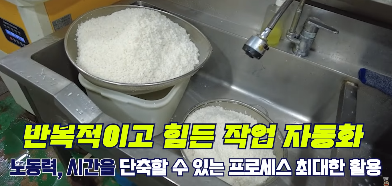 예전에는 인력으로 쌀을 씻고 담가 냉장 보관했지만, 매출이 늘면서 이 과정이 큰 부담이 되어 다시 사용하게 됐습니다.