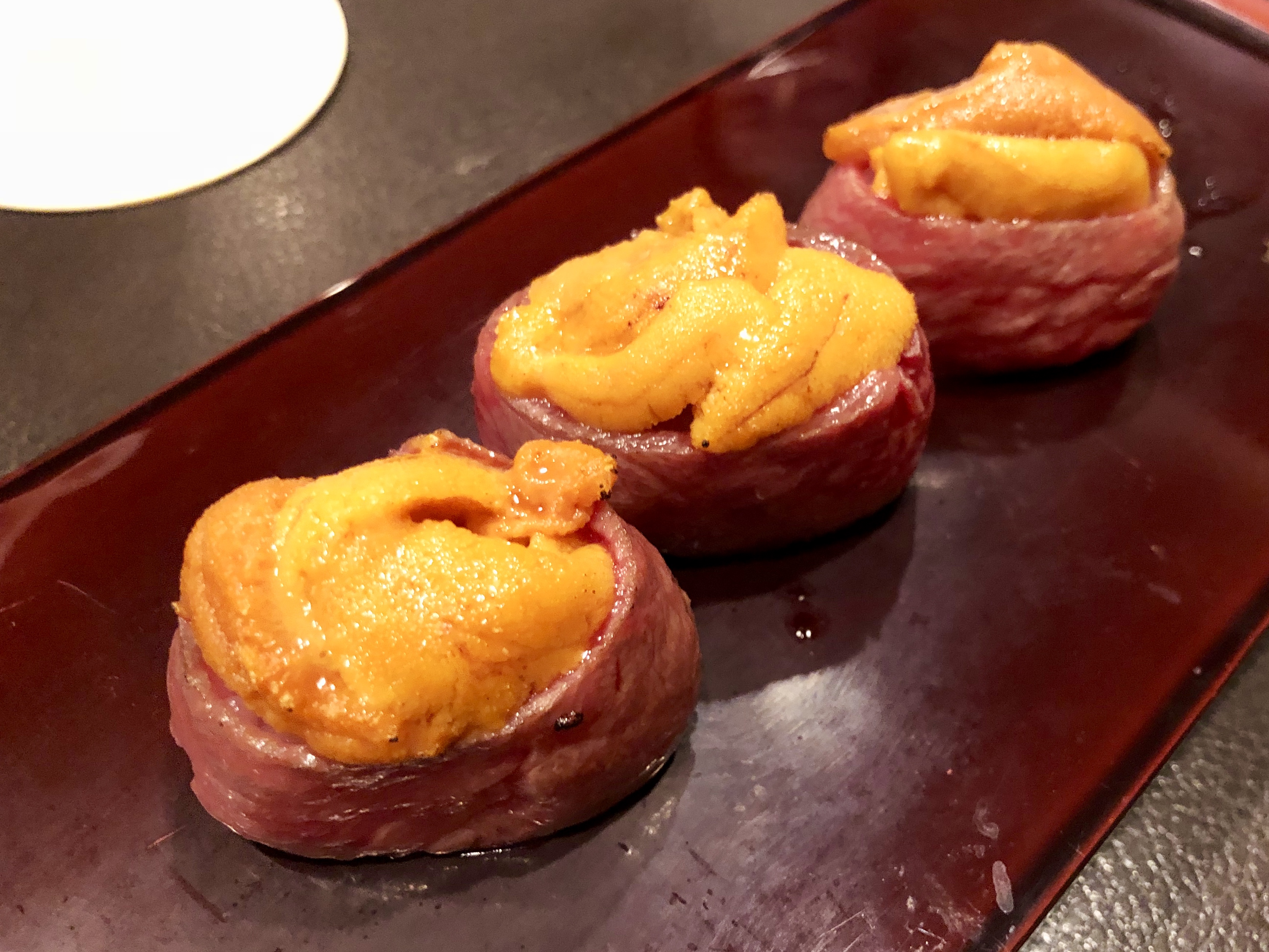 원조는 2010년 긴자 스시집 사이쇼(さいしょ)와 드라이에이징 야키니쿠집 카쿠노신(格之進) 콜라보입니다.