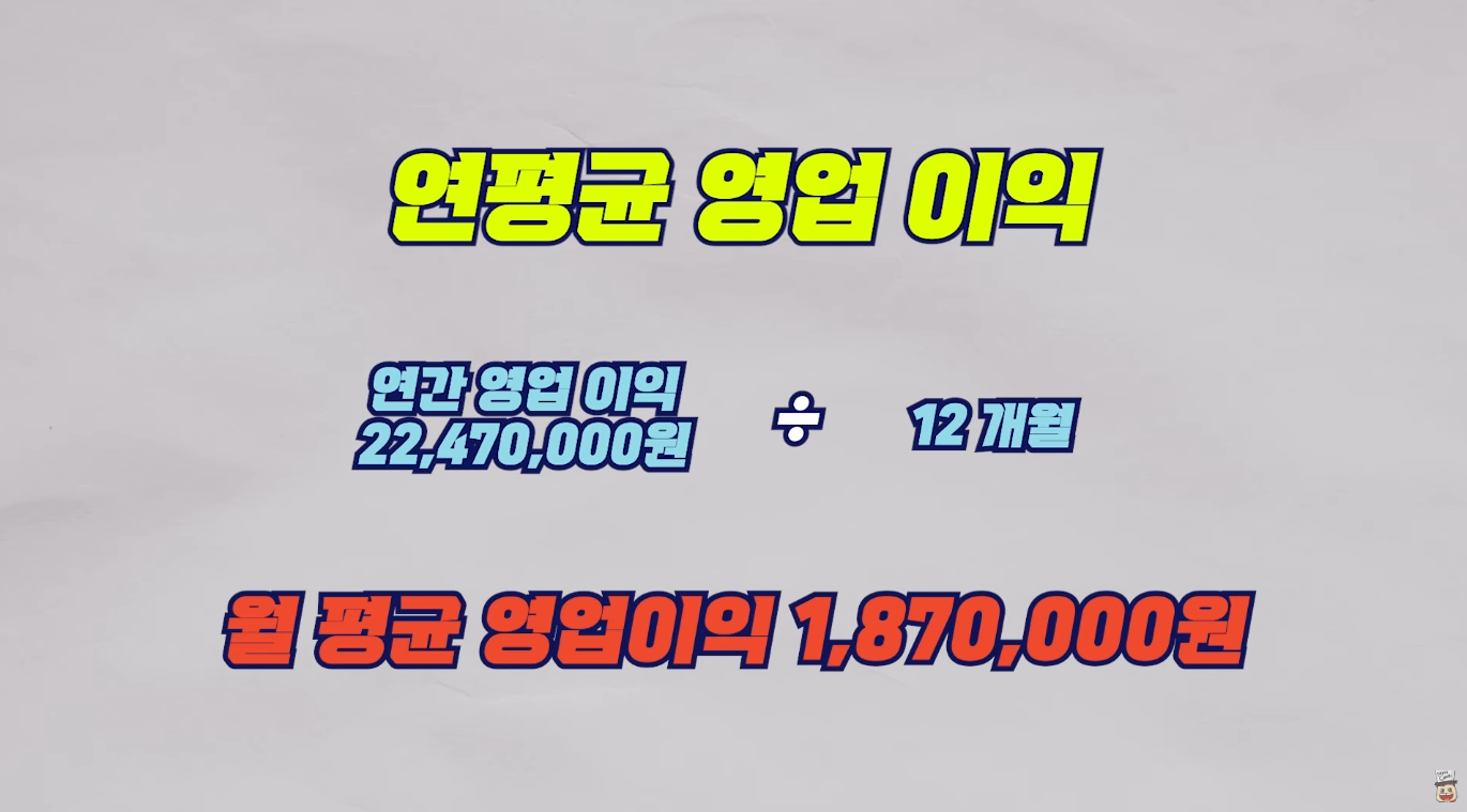 연평균 영업이익은 2,247만 원, 한 달로 나누면 187만 원 수준입니다.